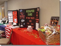 Grace Shiles and the Kickapoo Sams are avid supporters of local charities. Grace Shiles and Paul Percival present the camping grill donated by Camping World to support Grace’s “Cool Collars” project to benefit American soldiers (top left).